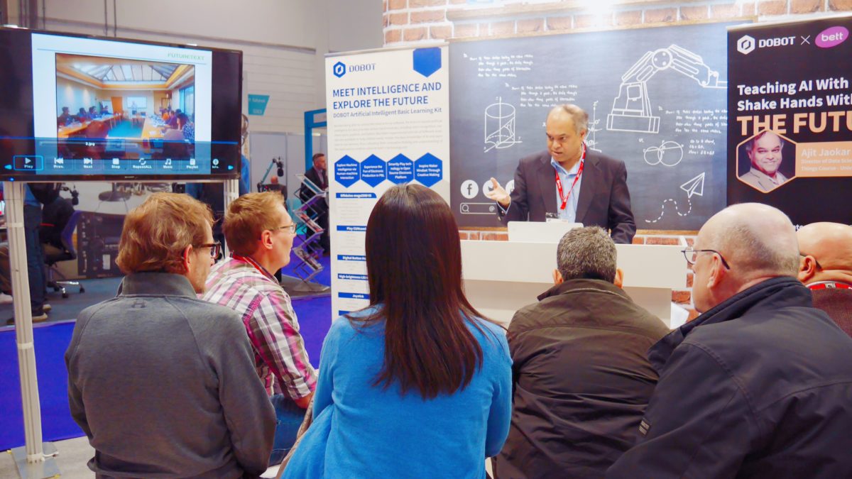 Ajit Jaokar, director de ciencia de datos para el curso de Internet de las cosas de la Universidad de Oxford, se presentó en el stand de Dobot: F320 y pronunció un discurso llamado "Enseñanza de IA con Dobot" en Bett 2019, la feria más grande del mundo sobre tecnología educativa en Londres.